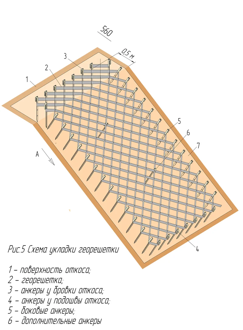 Надежная фиксация: Анкеры должны устанавливаться в соответствии со схемой и обеспечивать неподвижность георешетки.