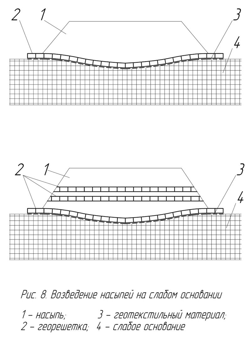 Возведение насыпей на слабом основании с применением георешетки «КОМЕТА-2001»